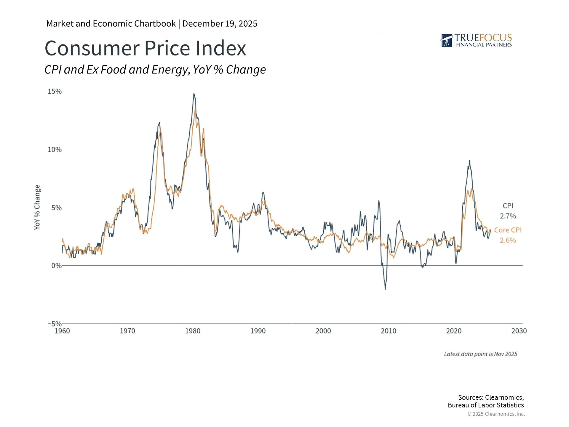 In 2025, there were turning points across many of the issues investors have faced over the past few years. Inflation, which is still affecting households, has stabilized around 3%. Tariffs, while high by historical standards and the main driver of stock market swings in 2025, have not resulted in the economic disruption many feared. The Federal Reserve has continued cutting rates, and the economy has grown at a healthy pace.