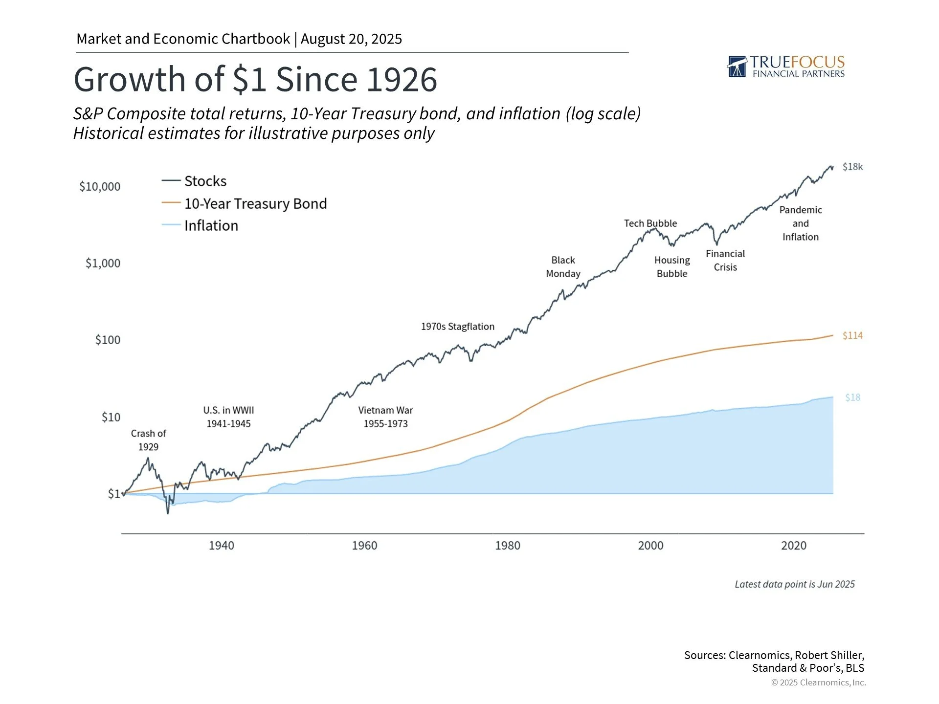 For investors who lived through the inflation of the 1970s and early 1980s, or the price surges that followed the pandemic, this pattern should feel familiar. On the one hand, inflation is more stubborn than many would like, and there are continuing concerns that tariffs will raise consumer prices. On the other hand, today’s inflation is occurring alongside healthy employment, consumer spending, and corporate profits. This creates a complex environment for both investors and policymakers as they balance growth and inflation.